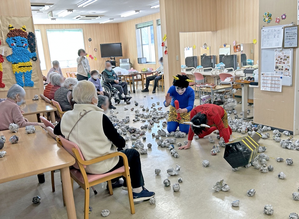ユニークな鬼漫才も楽しみつつ、皆で玉を投げまくりました!