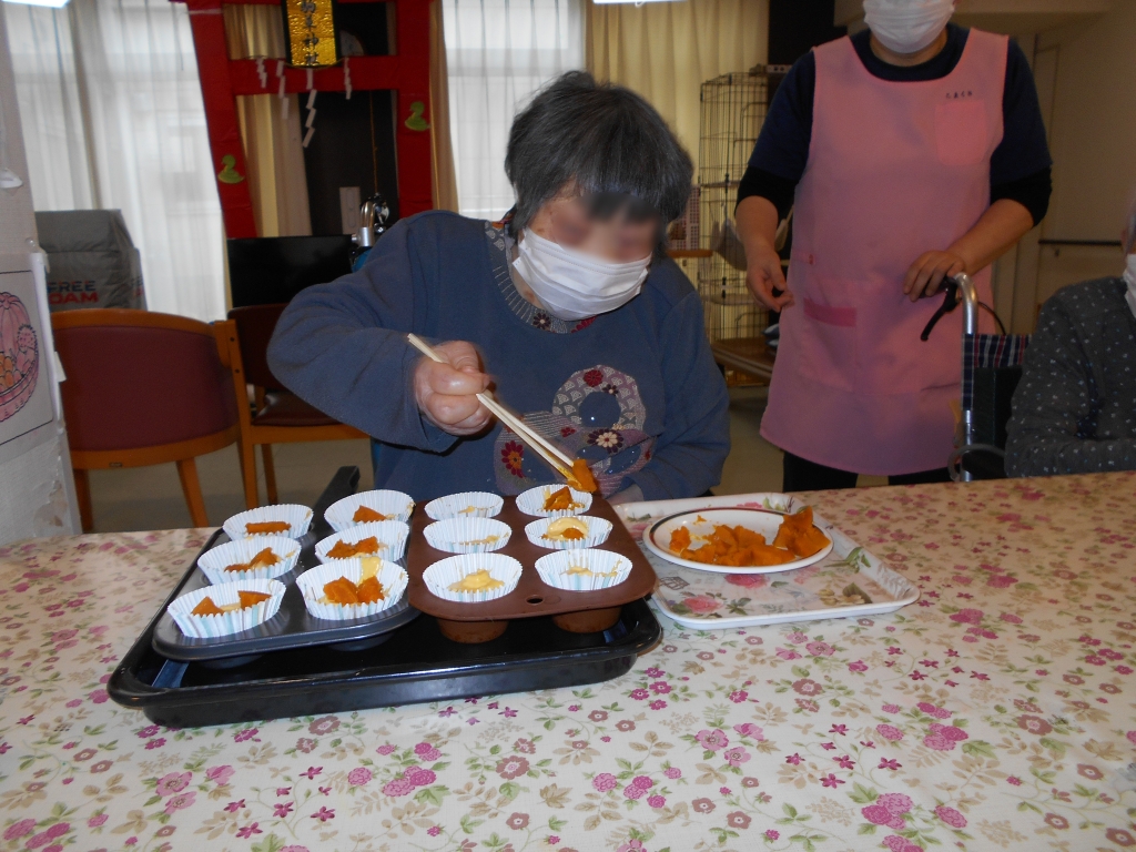 お手伝い頂きおやつ用のパンプキンカップケーキを焼きました