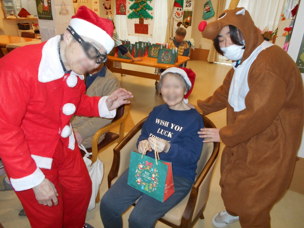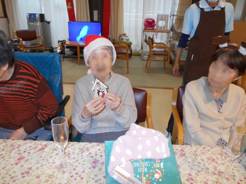 入居者様にサンタの衣装を着けて頂き
