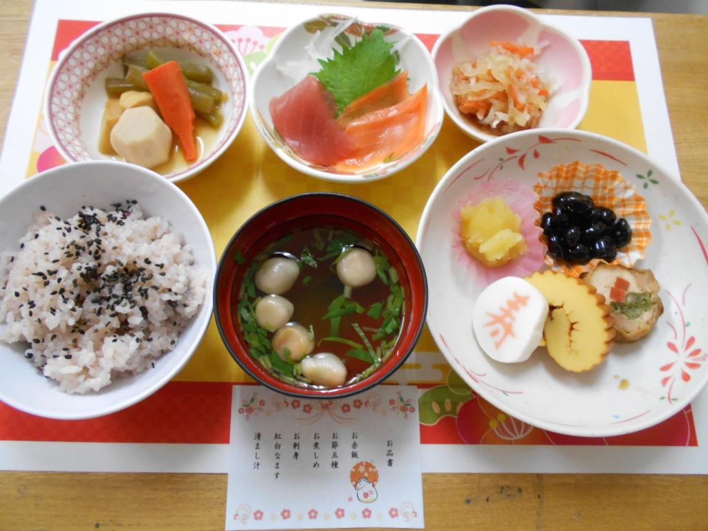 元旦の昼食に祝い膳が出ました 大晦日には年越しそばを食べました